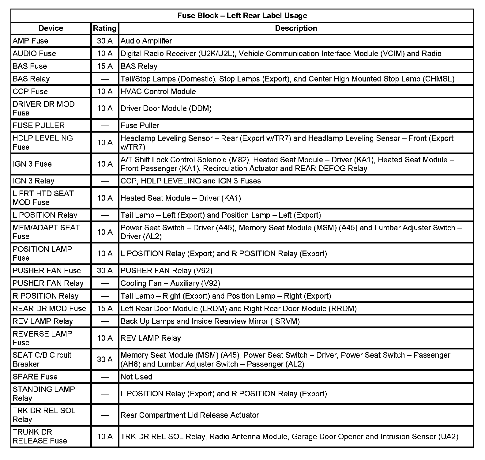 Left Rear Fuse Block