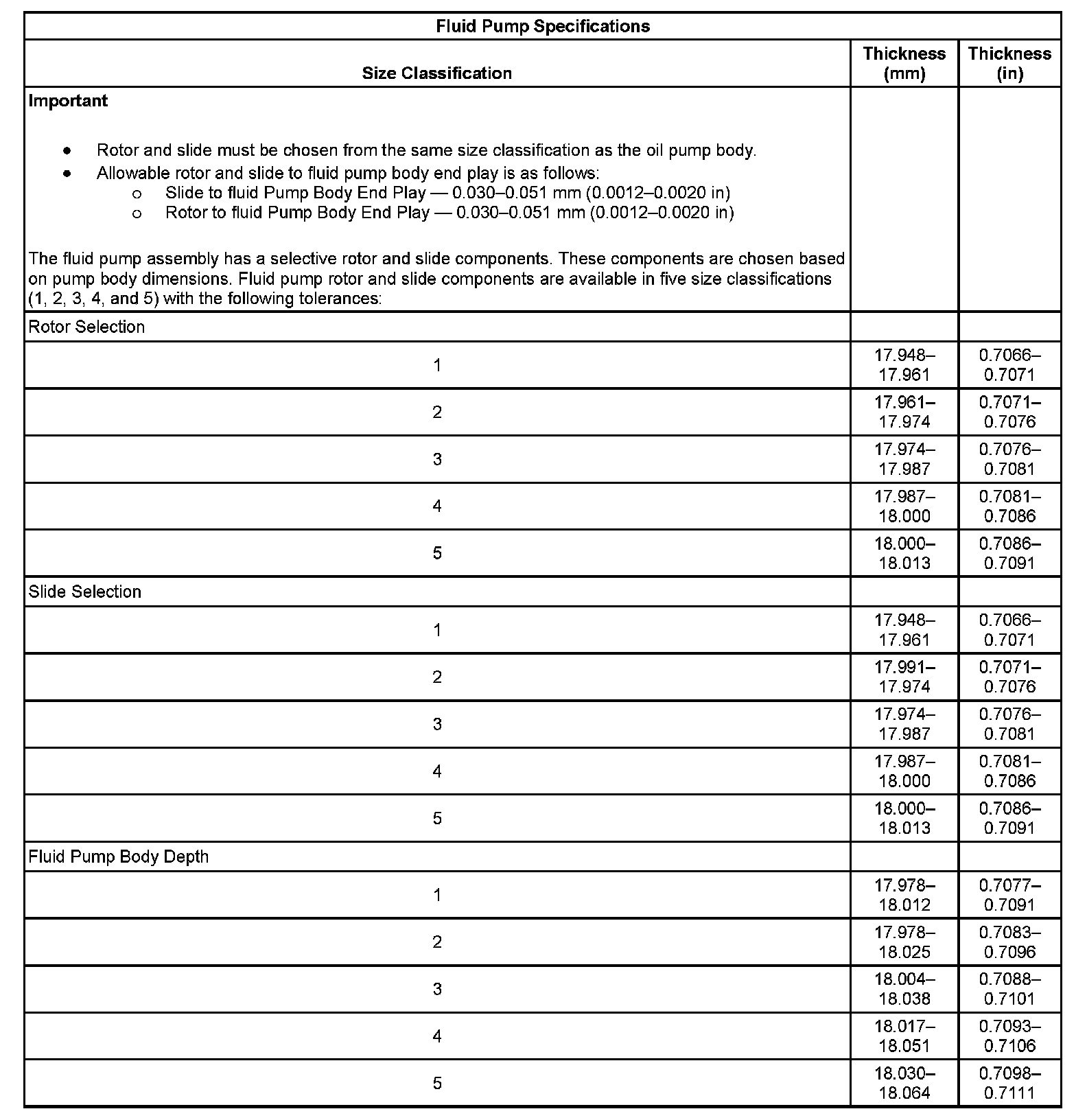 Fluid Pump Specifications: