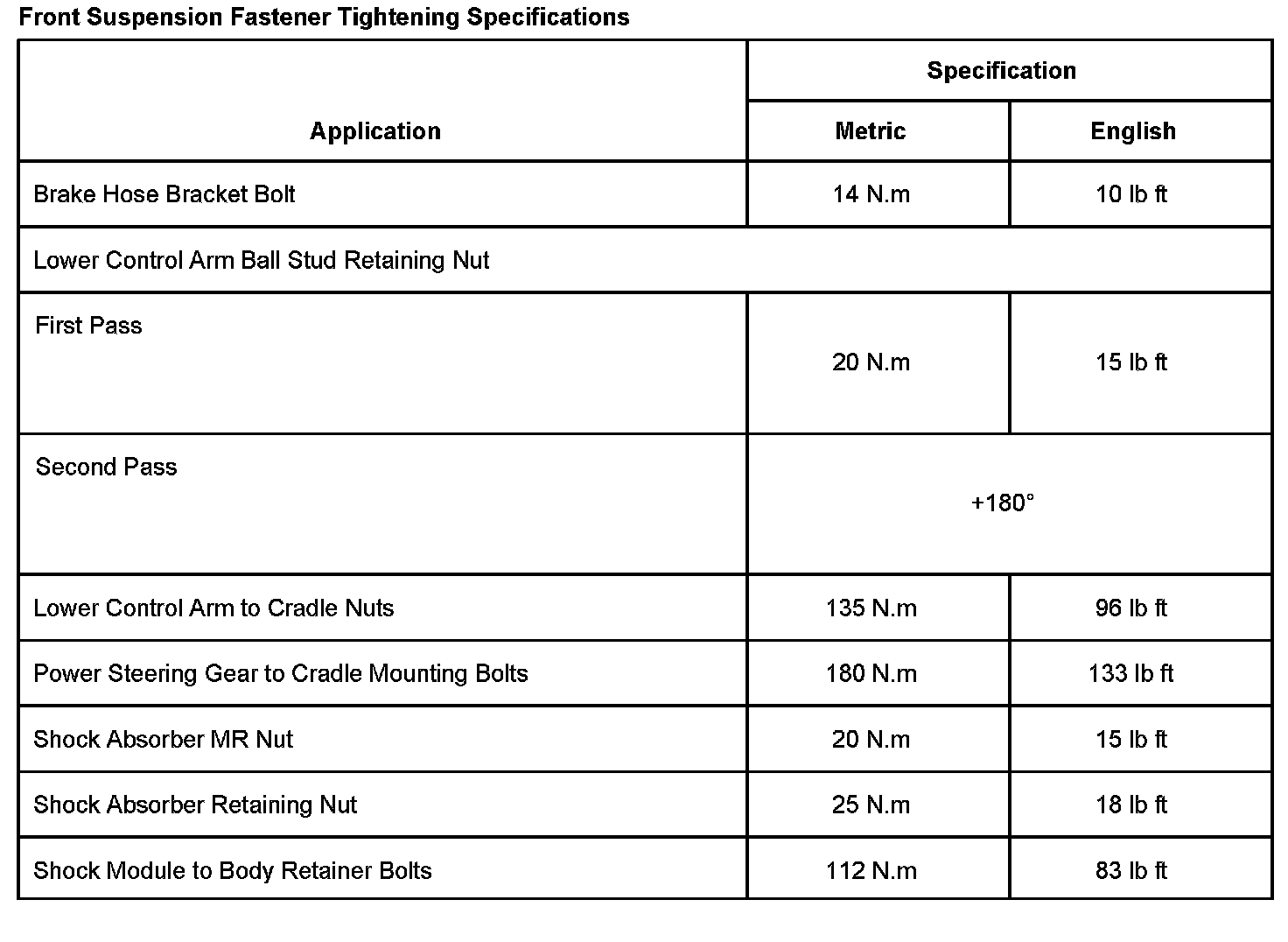 Front Suspension Fastener Tightening Specifications (2 Of 2):