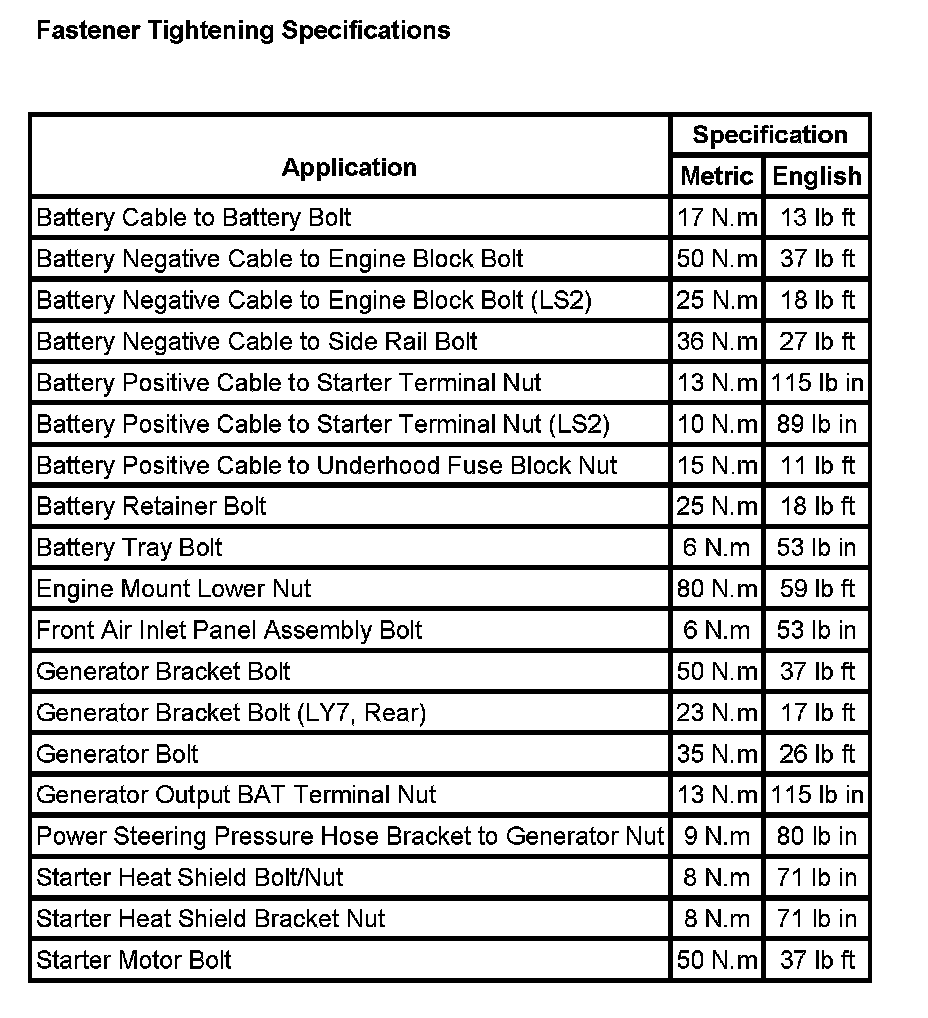 Fastener Tightening Specifications:
