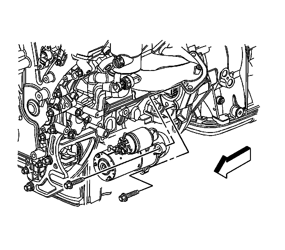 6. Remove the starter motor bolts.