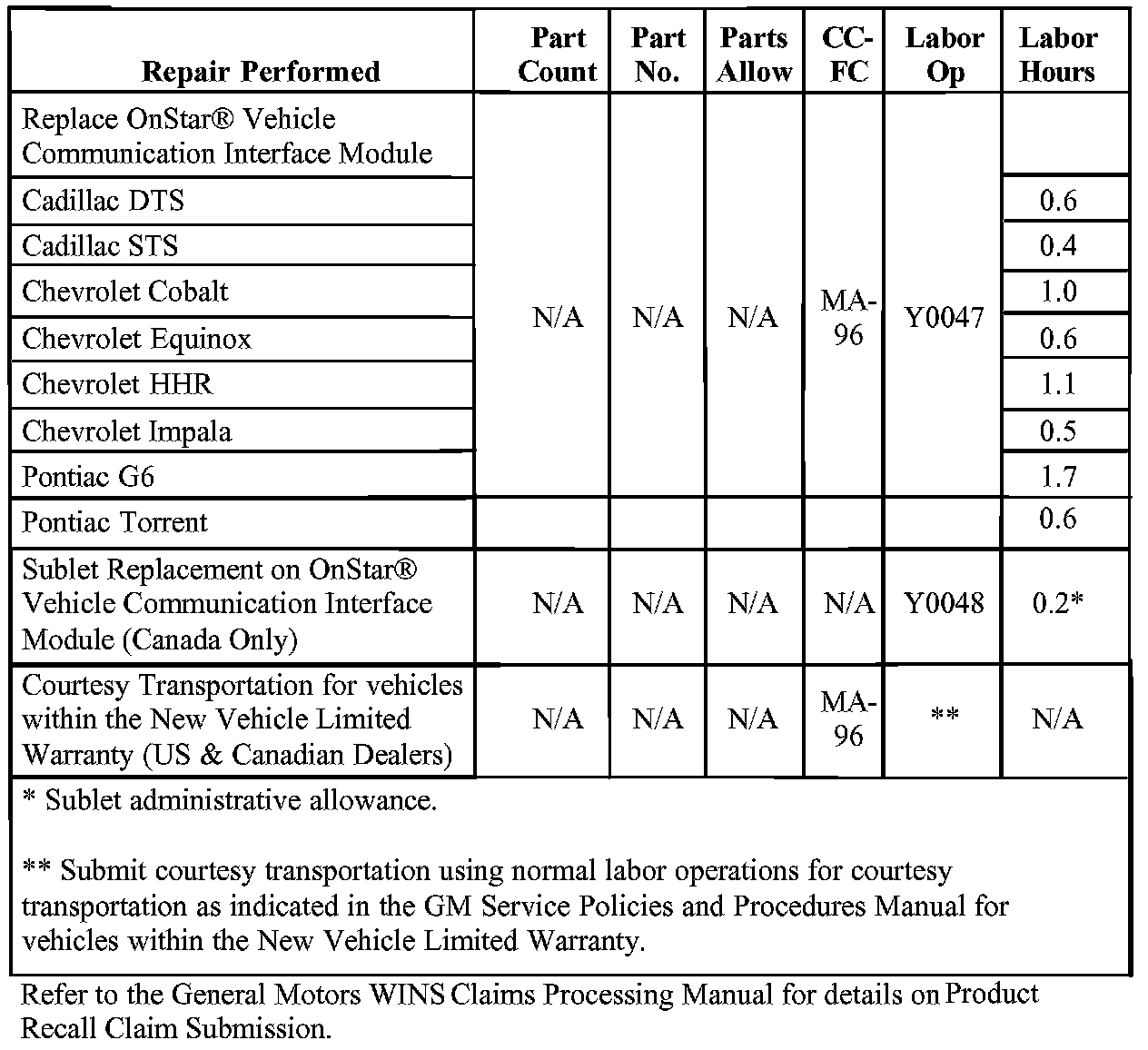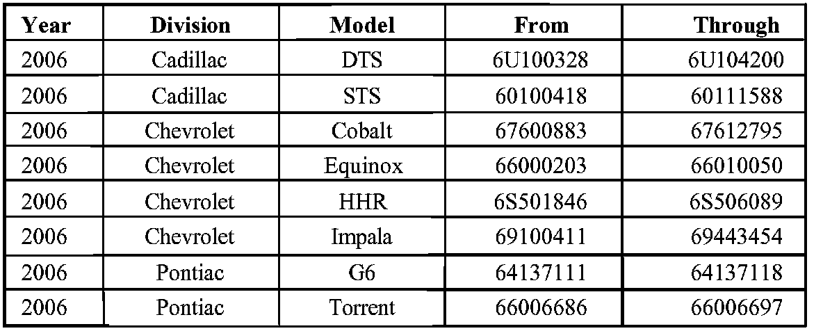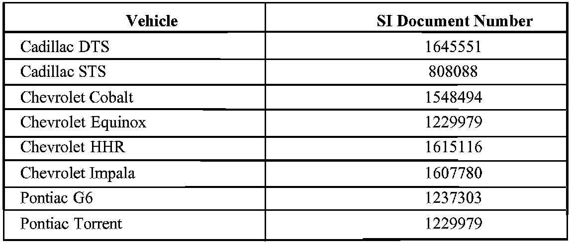 Involved are certain 2006 Cadillac DTS, STS; Chevrolet Cobalt, Equinox, HHR, Impala; and Pontiac G6 and Torrent vehicles equipped with OnStar(R) and built within the VIN breakpoints shown.