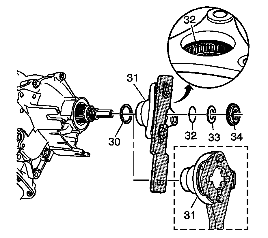 5. Remove the prop shaft flange washer (33) and seal (32).