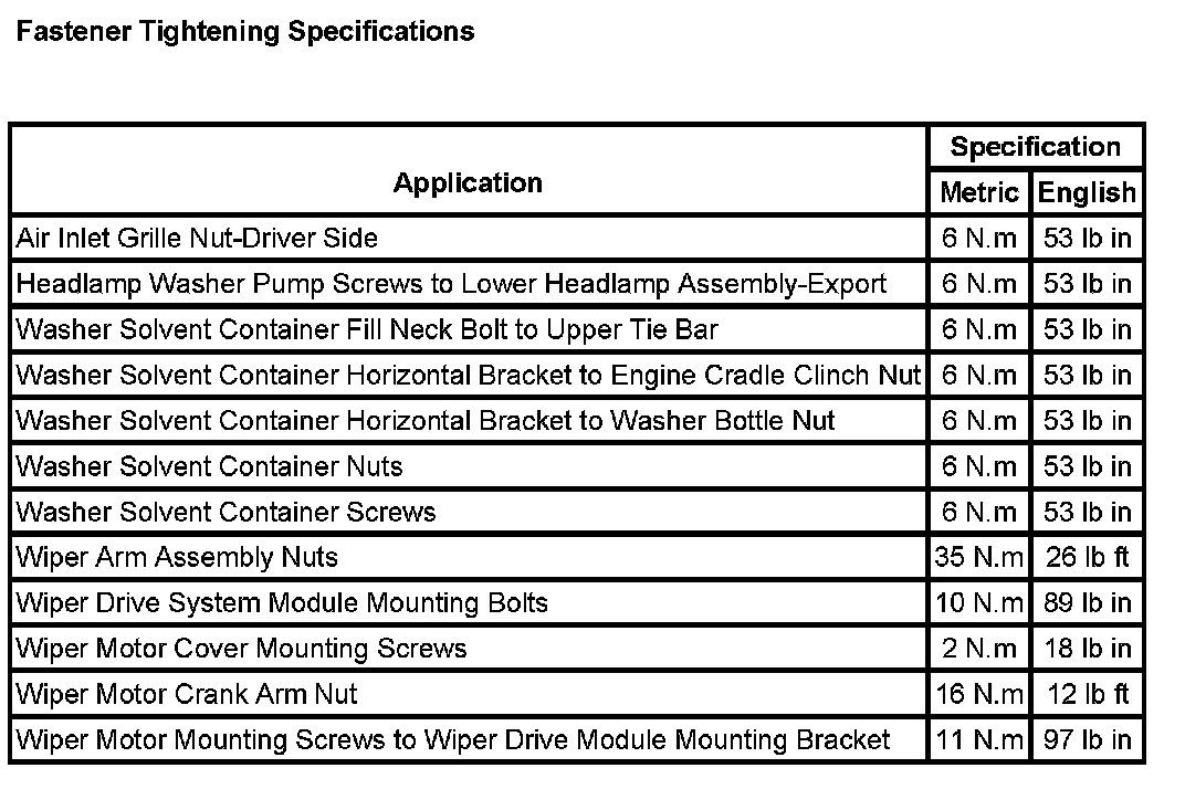 Wiper and Washer Systems: Specifications