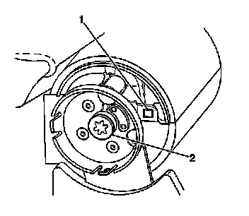 2. Install the screws (1) securing the armrest to the console tray.