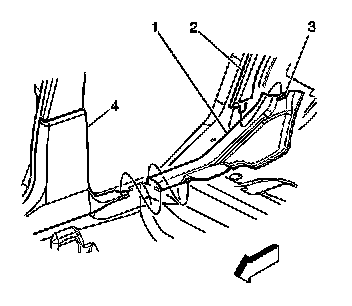 12. Disconnect the right rear quarter panel electrical connectors (3,4).
