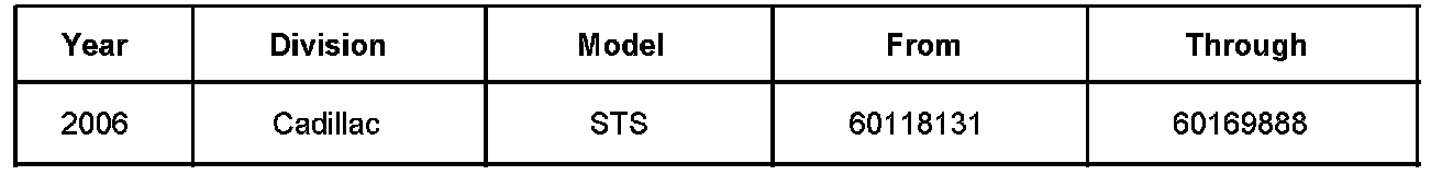 Involved are certain 2006 Cadillac STS model vehicles equipped with AWD and a 3.6L V6 (RPO LY7 - VIN 7) engine and built within the VIN breakpoints shown.