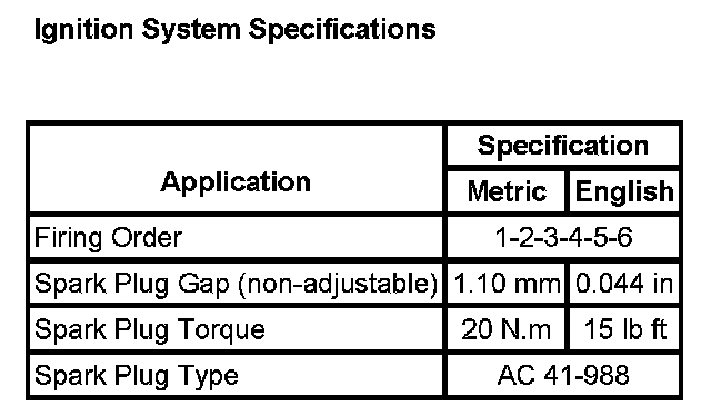 Ignition System Specifications: