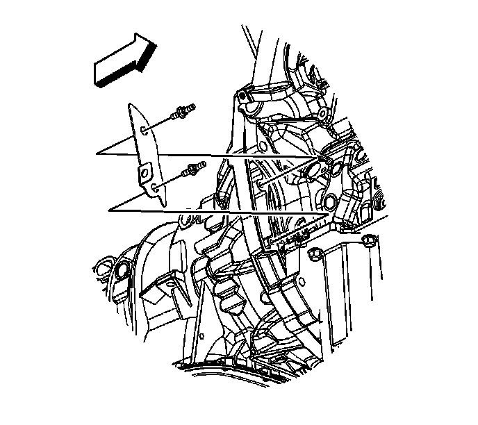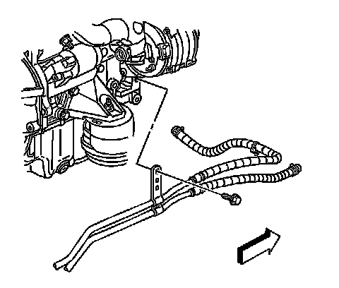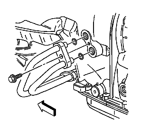 16. Install the bolt securing the transmission fluid cooler pipes brace to the engine.