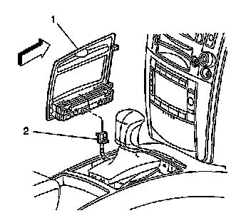 2. Install the the trim plate (1) to the console with the front tabs.