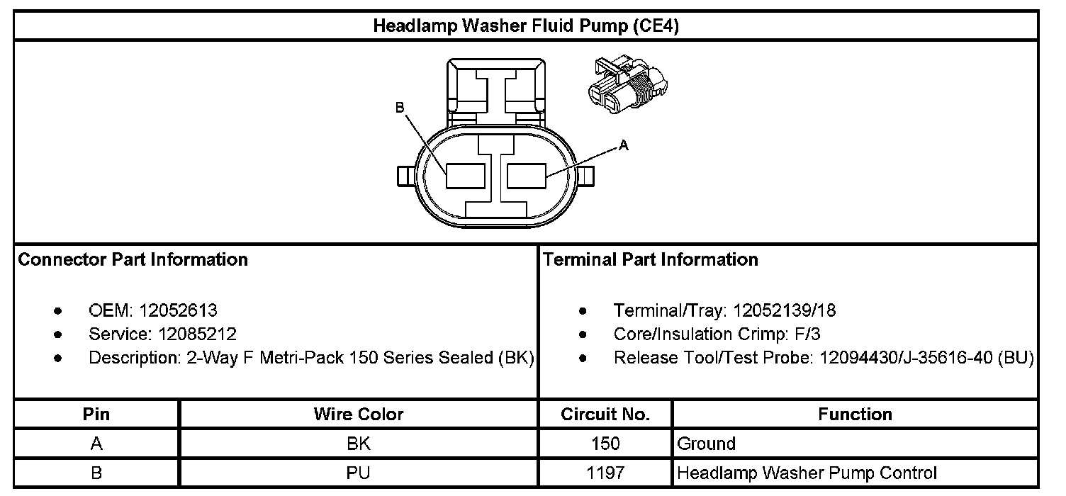 Headlamp Washer Fluid Pump (With RPO Code CE4):