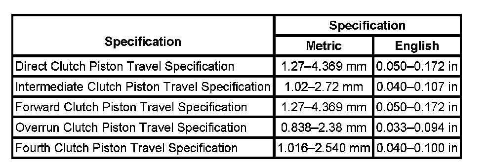 Transmission General SpecificationsTransmission General Specifications:
