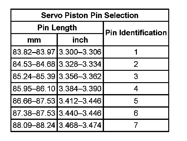 Low and Reverse Band Servo Piston Pin Specification Chart