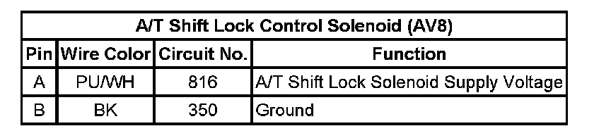 A/T Shift Lock Control Solenoid (AV8):