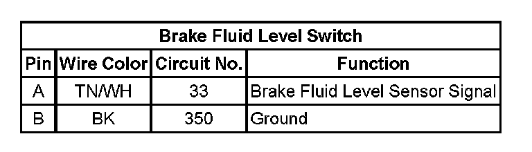 Brake Fluid Level Switch: