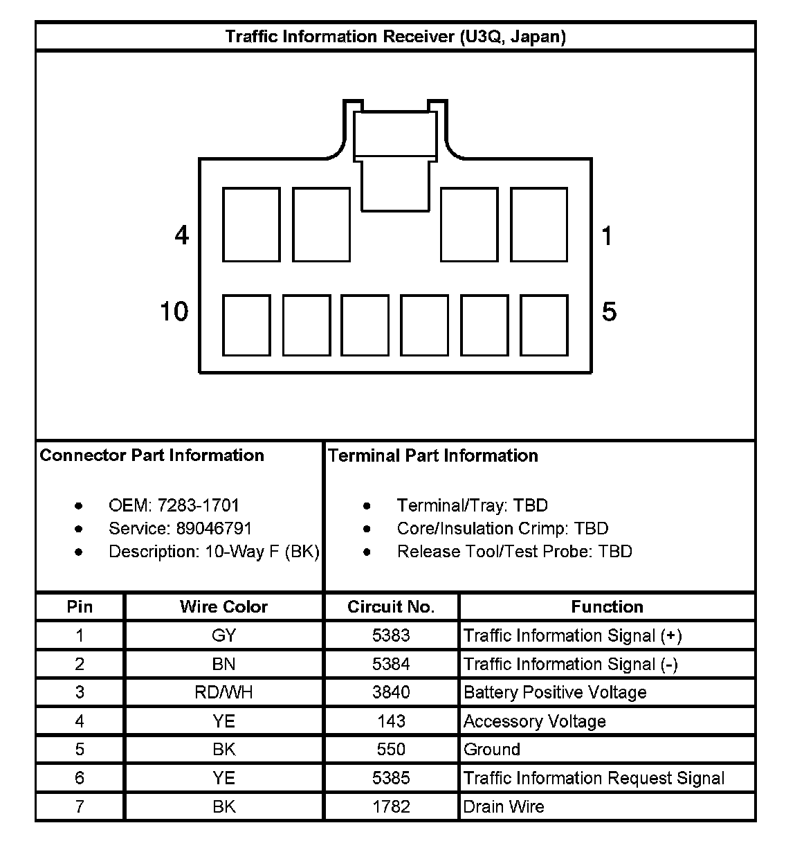 Traffic Information Receiver (With RPO Code U3Q, Japan):