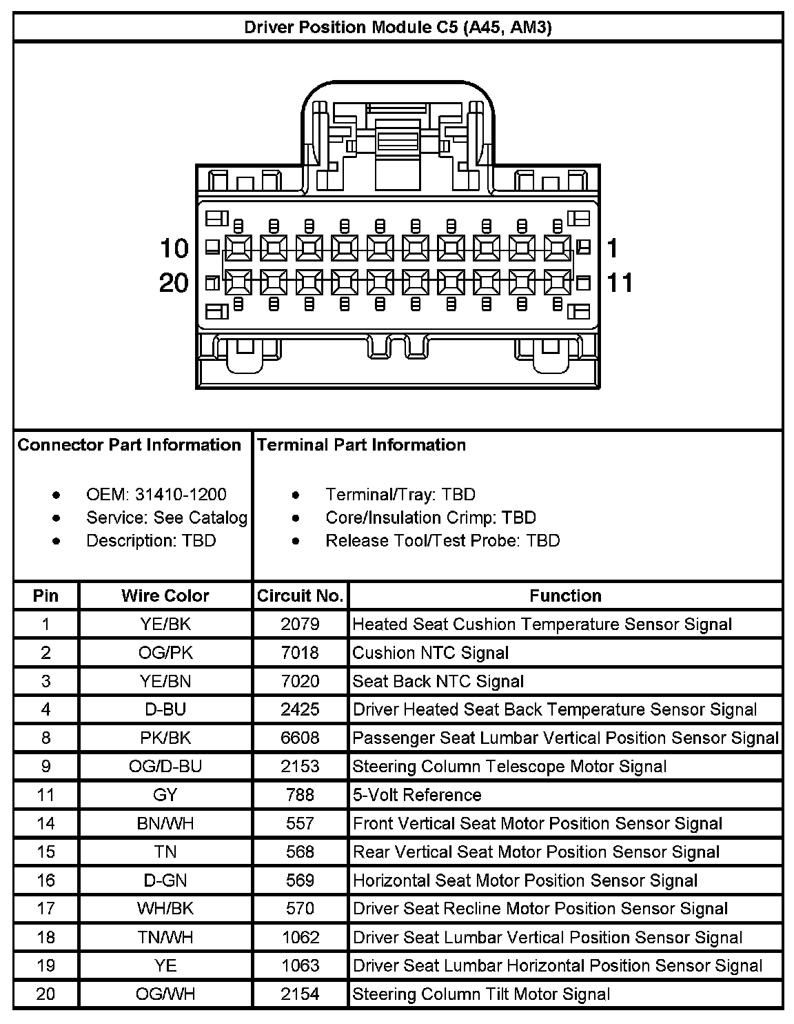 Driver Position Module C5 (With RPO Code A45, AM3):