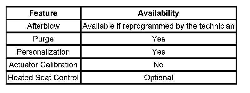 Afterblow is a feature that dries the evaporator core by operating the blower motor after the engine is turned OFF. This reduces the amount of microbial growth that can create undesirable odors. The vehicle does not come equipped with the afterblow feature turned ON. If the afterblow feature is required due to an odor concern, it must be turned ON by reprogramming the HVAC control module. Refer to Service Programming System (SPS).