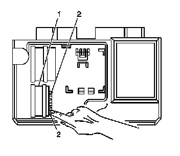 7. With the locking tabs (2) depressed, slide the RIM (1) out of the mounting bracket.