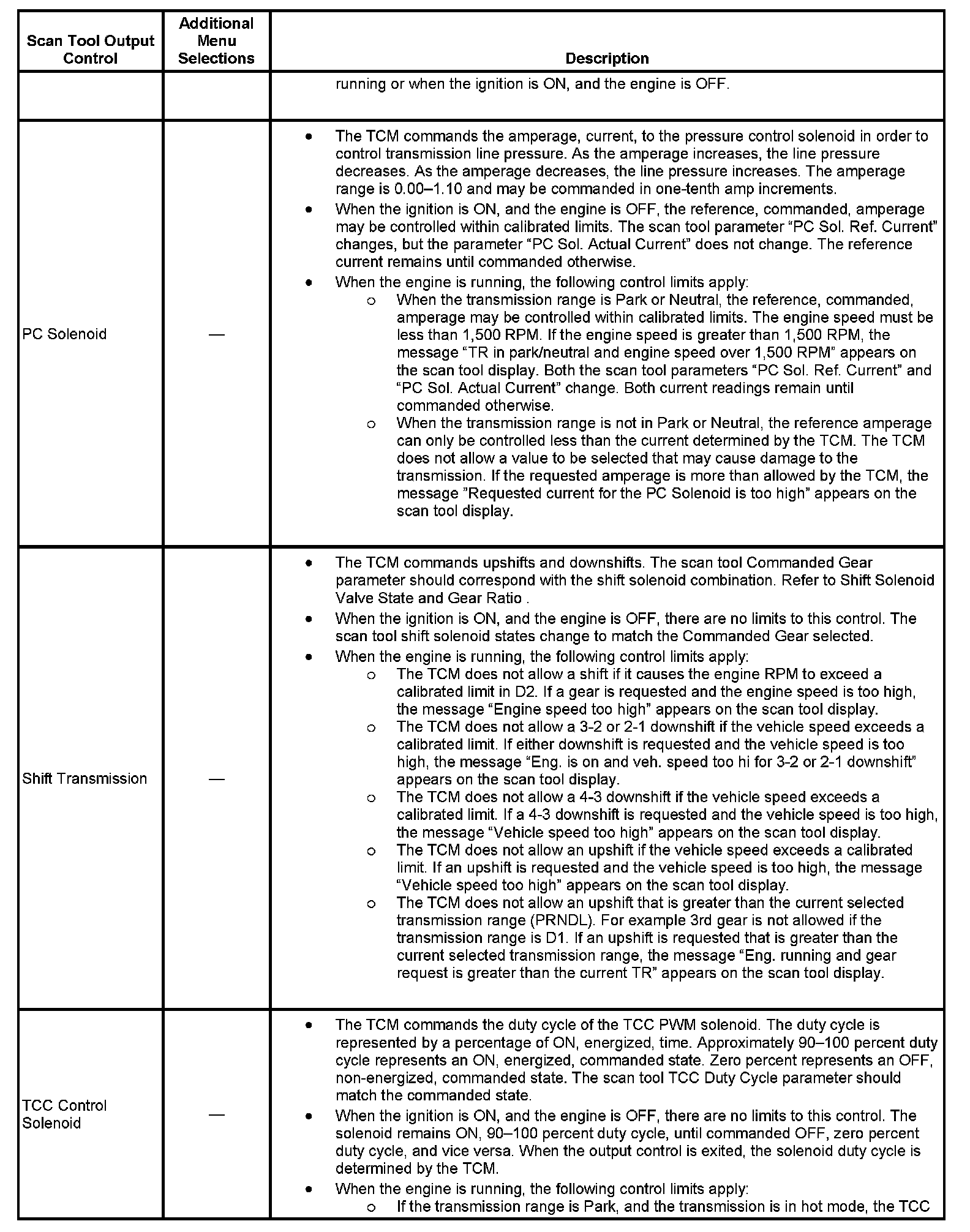 Scan Tool Output Controls: