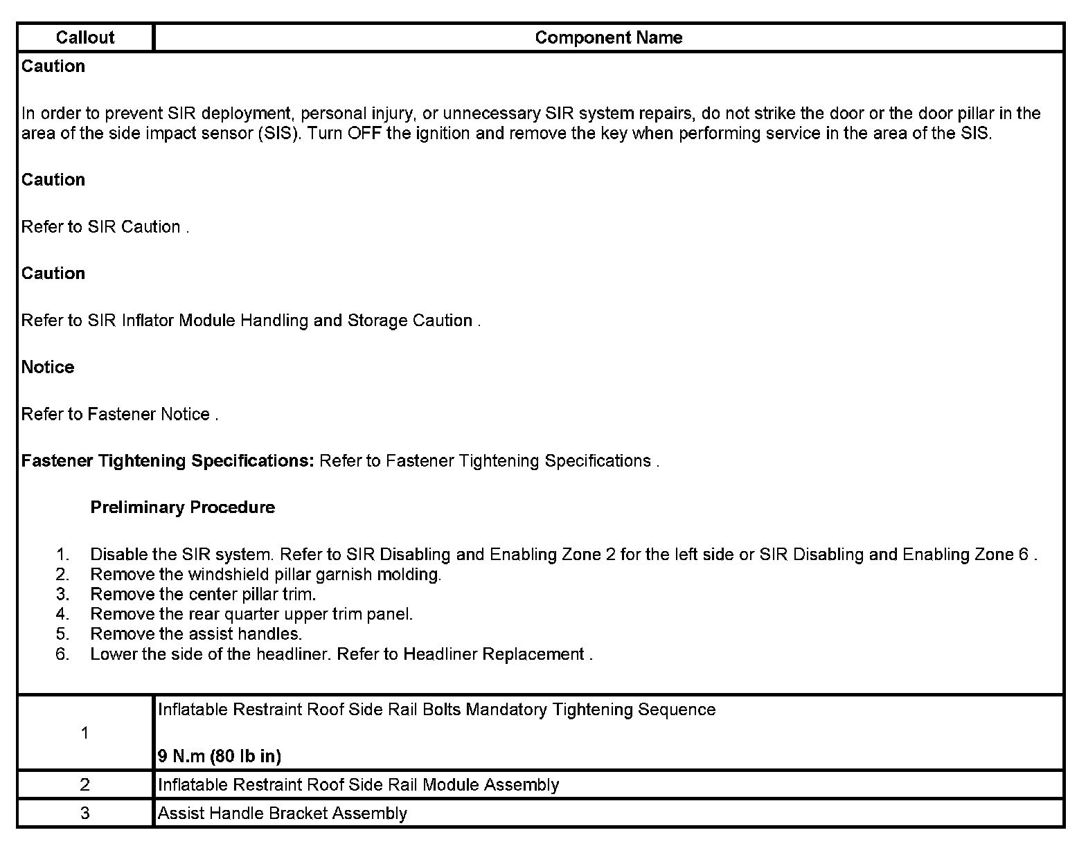 INFLATABLE RESTRAINT ROOF RAIL MODULE REPLACEMENT