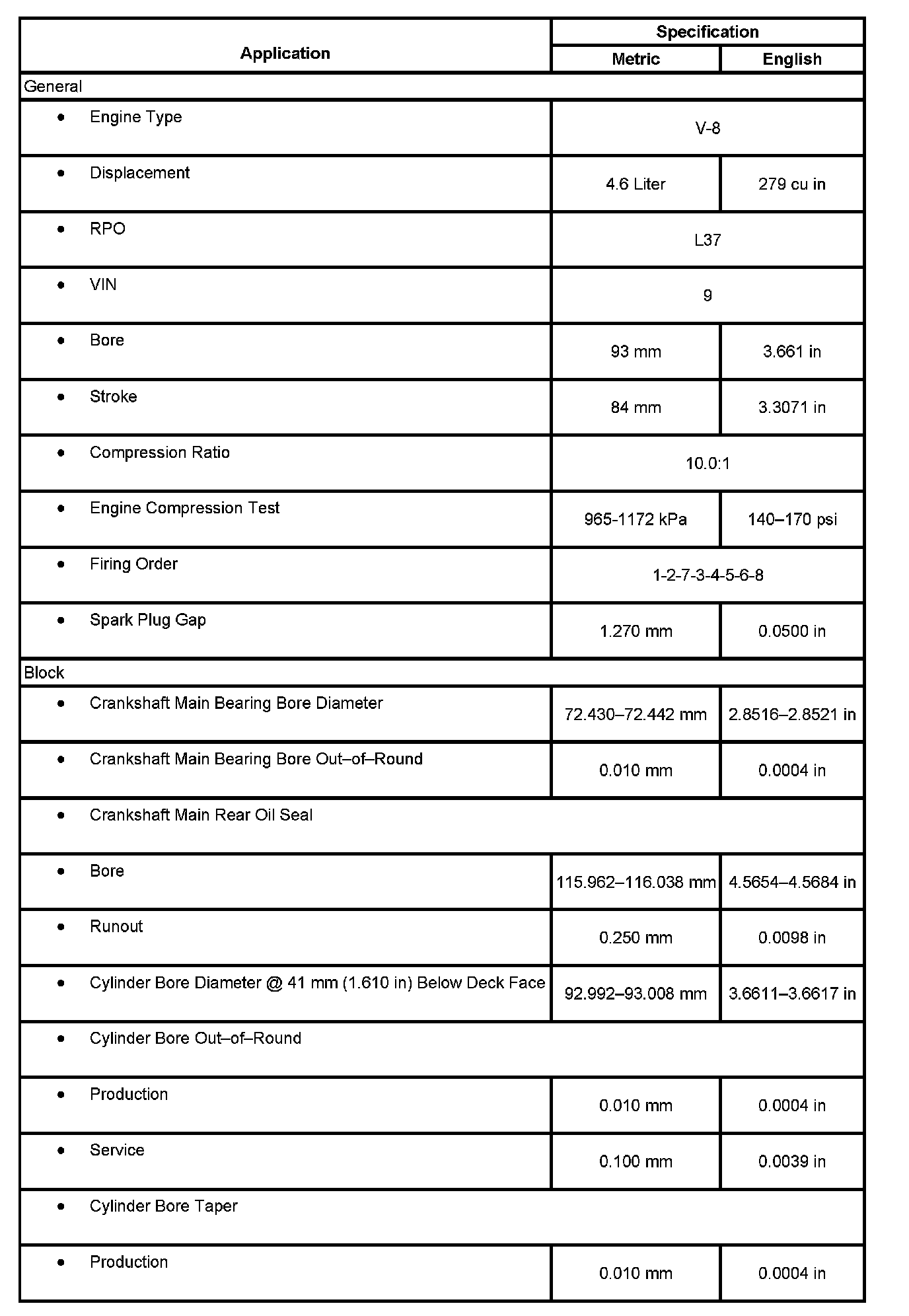 Engine Mechanical Specifications (L37) Engine Mechanical Specifications: