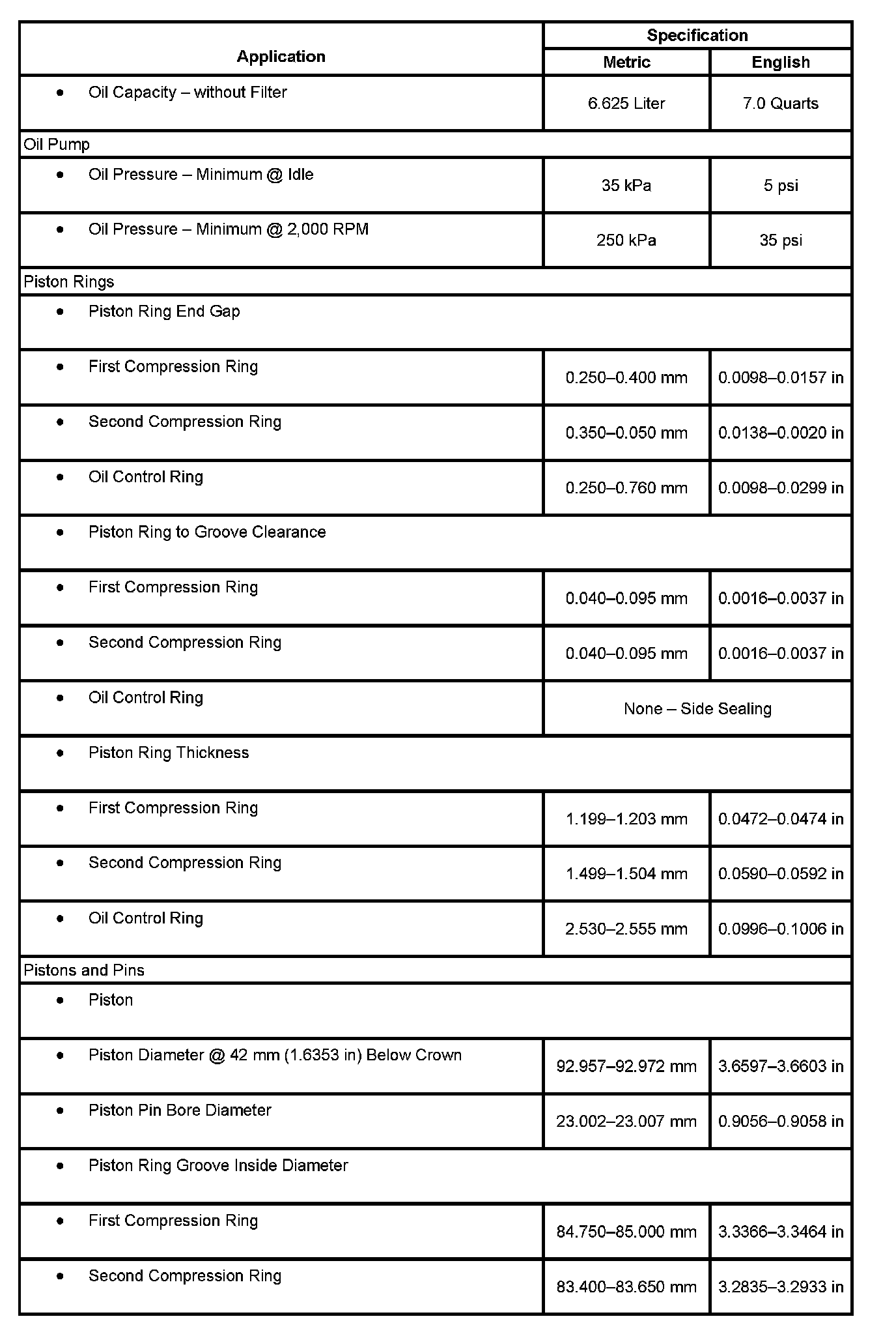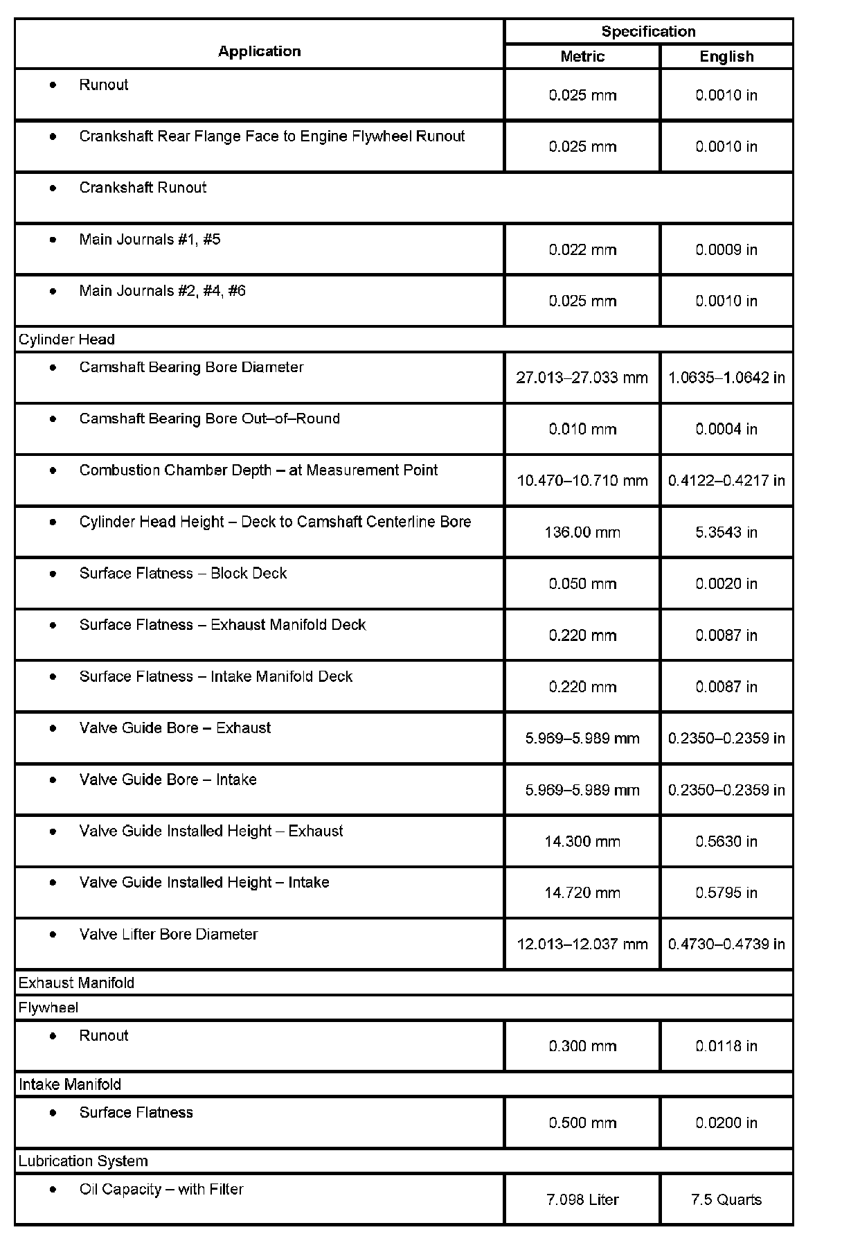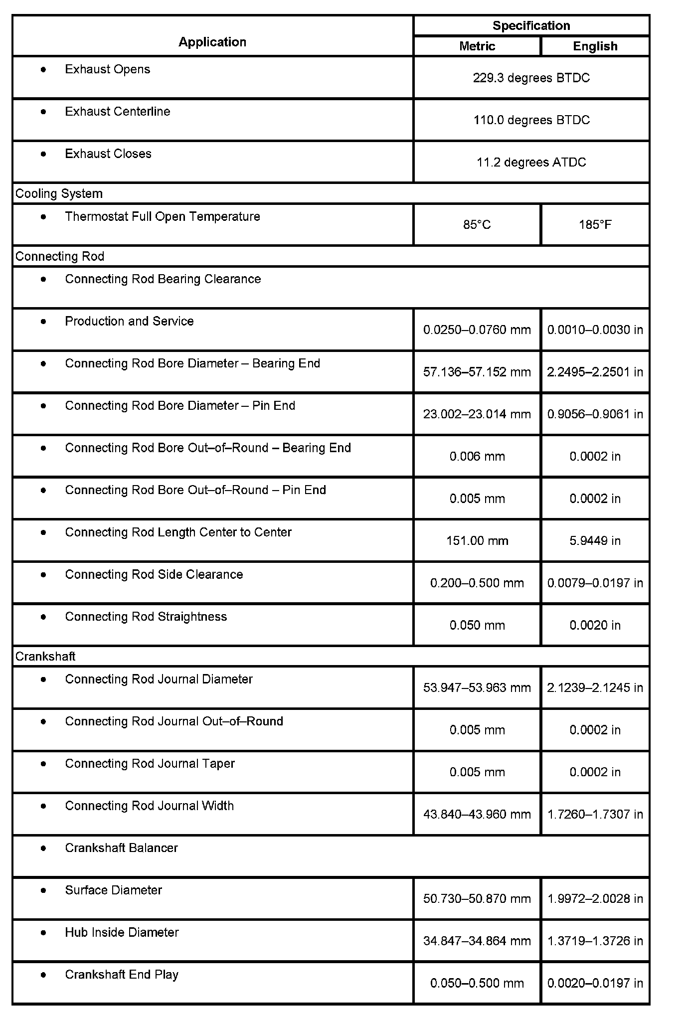 Engine Mechanical Specifications: