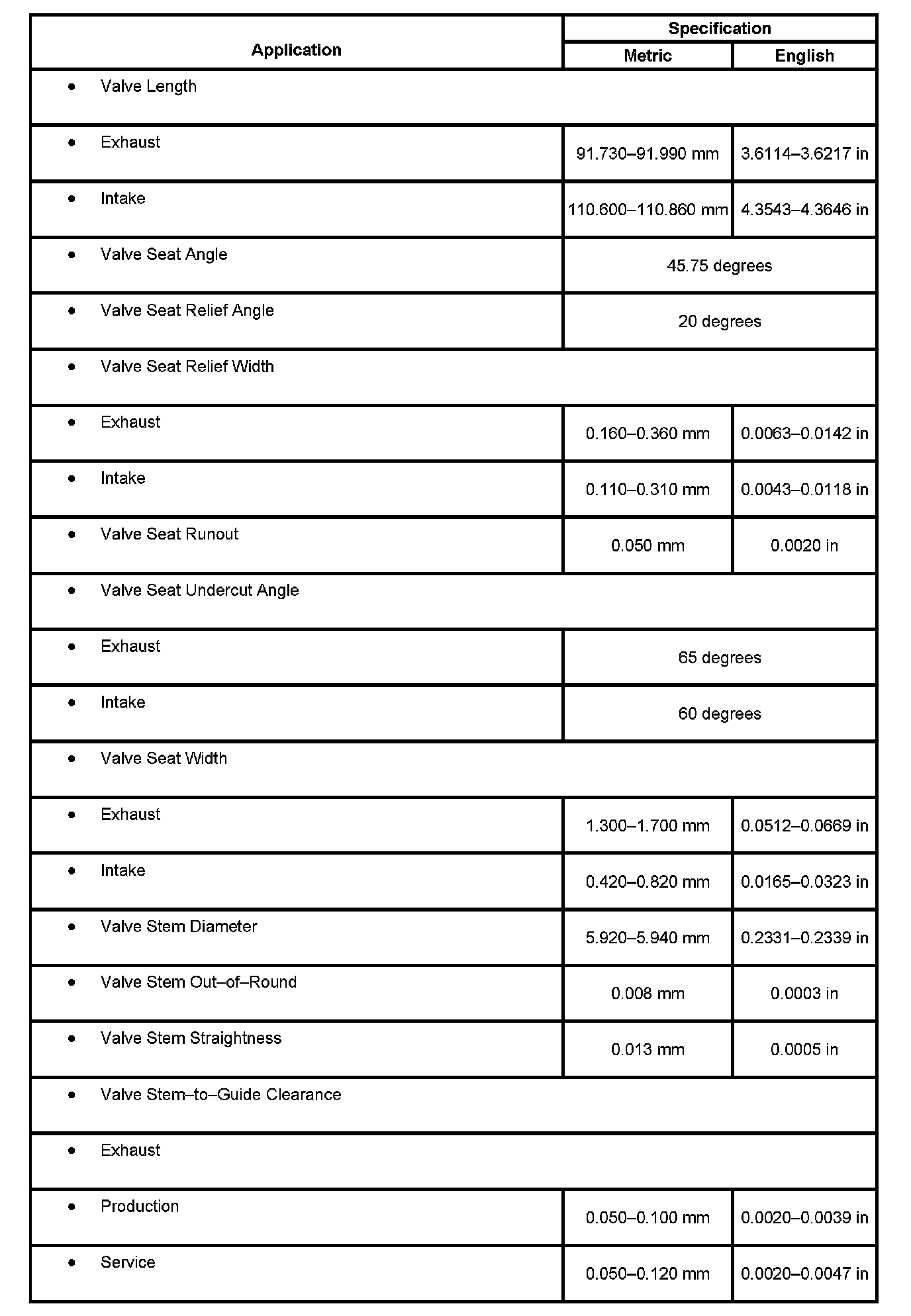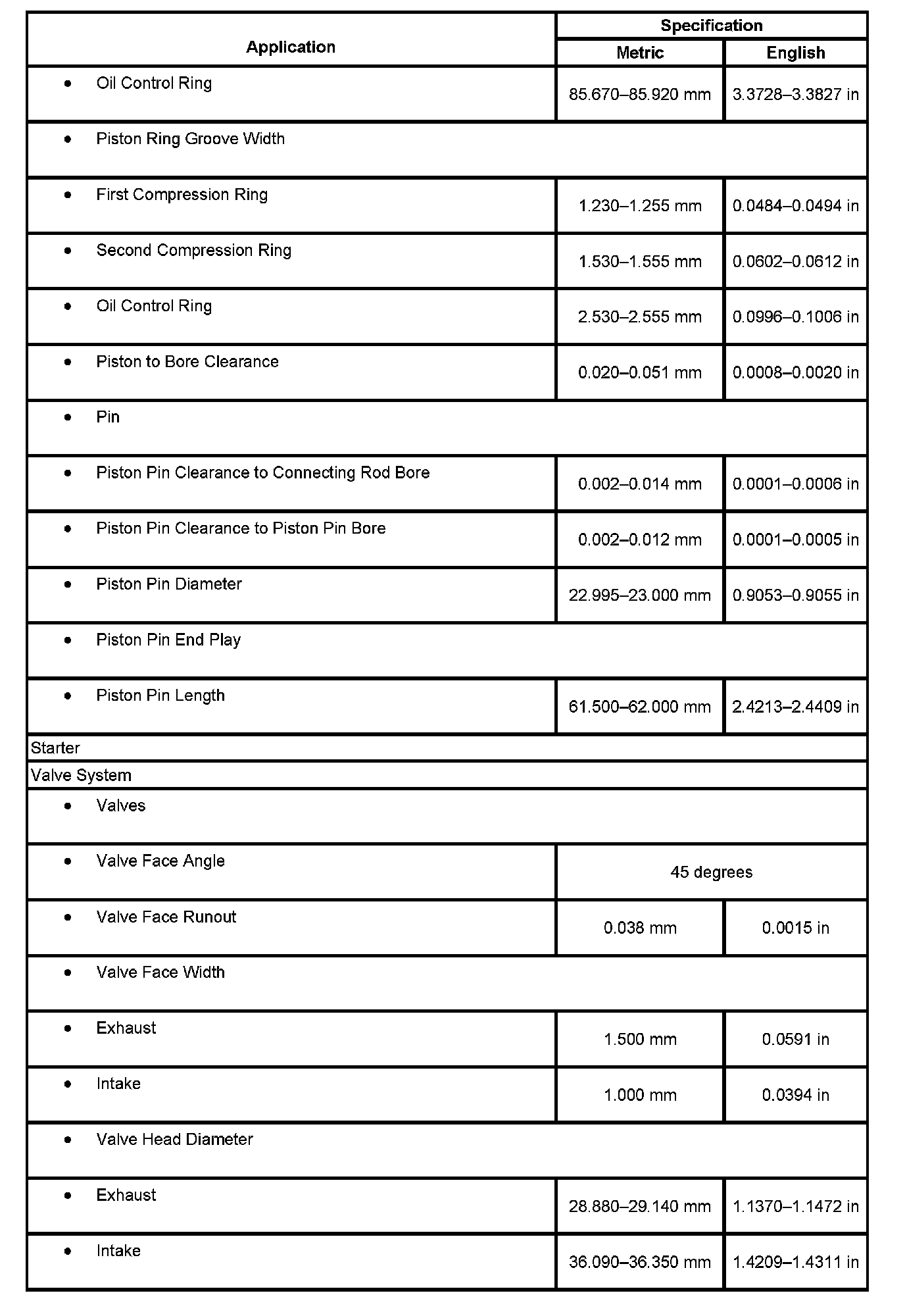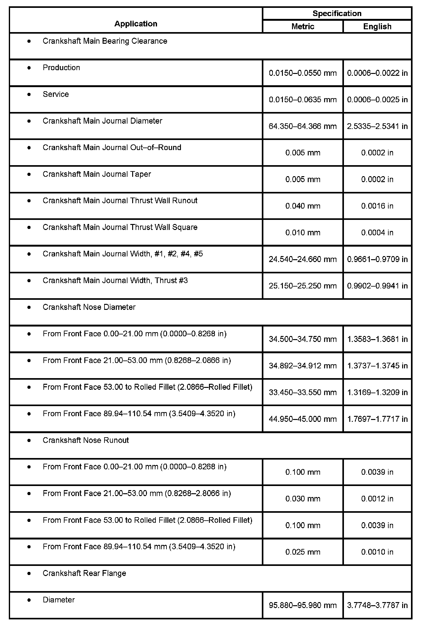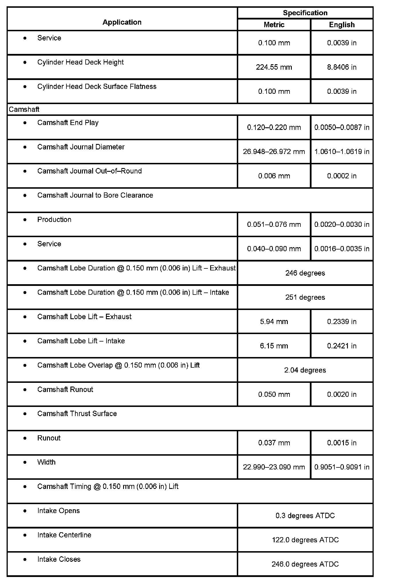 Engine Mechanical Specifications: