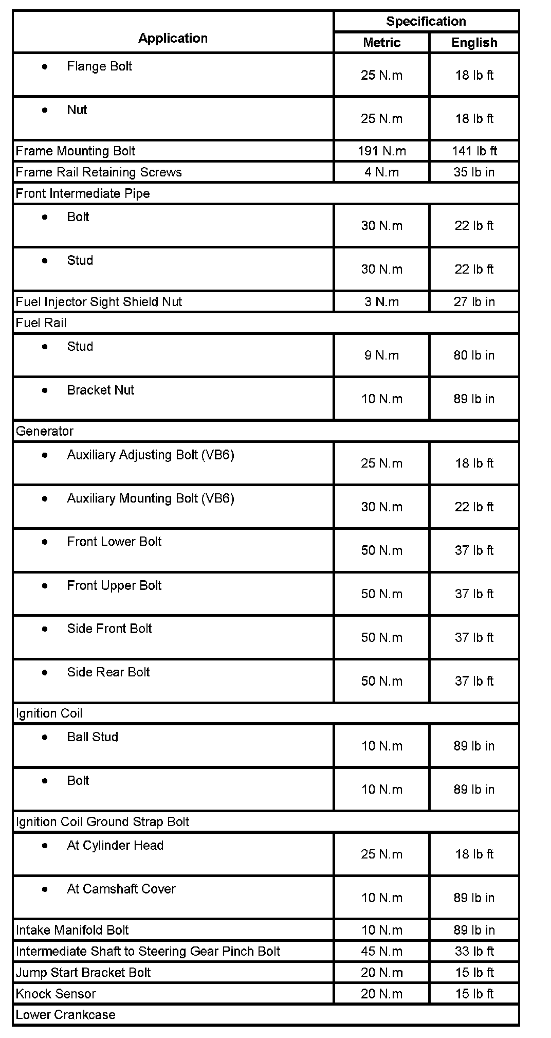 Fastener Tightening Specifications: