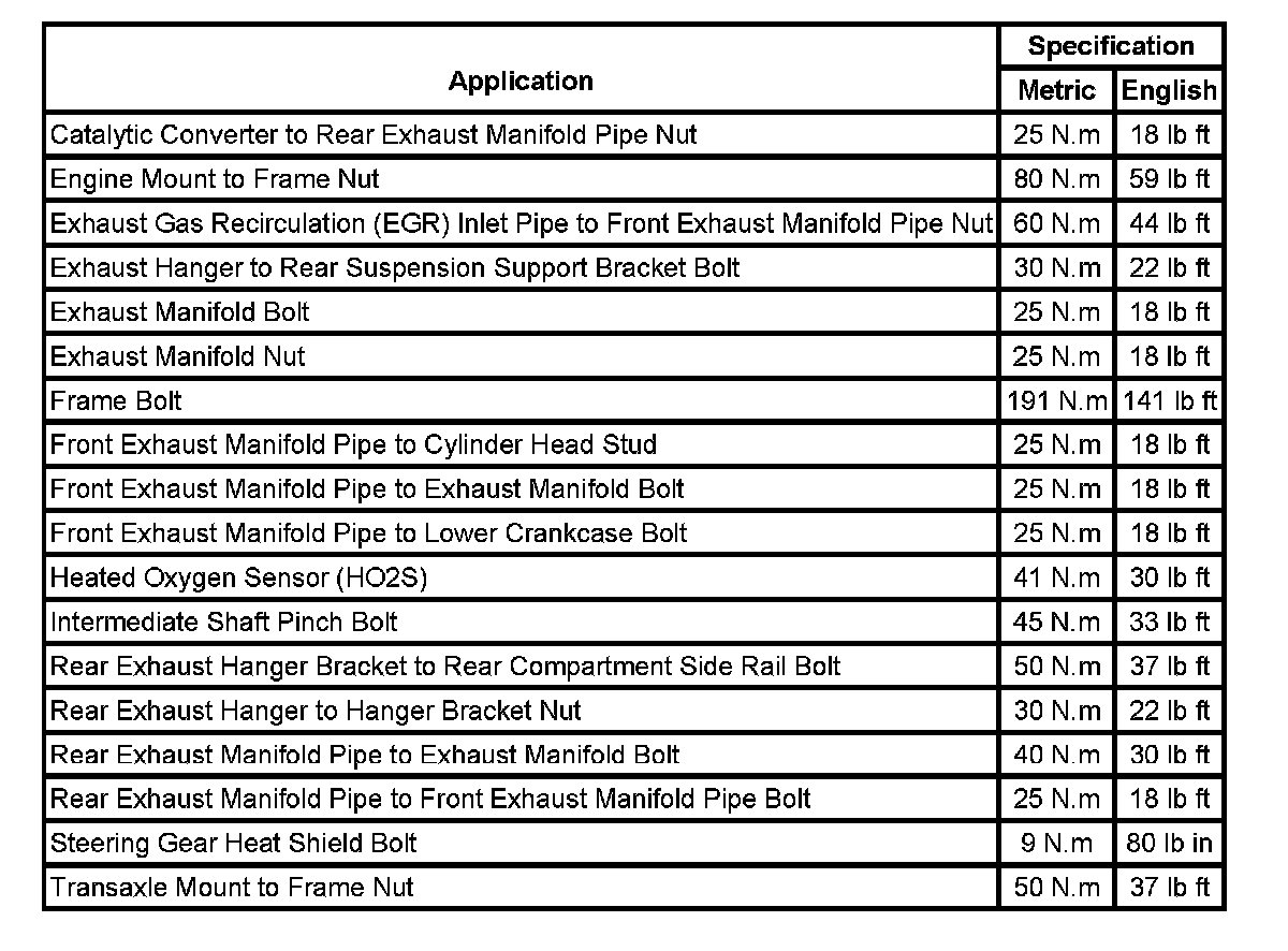 Fastener Tightening Specifications: