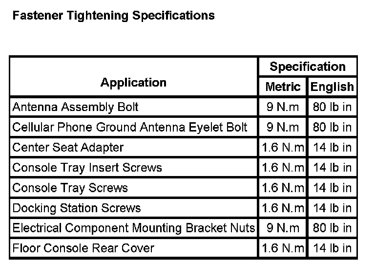 Fastener Tightening Specifications: