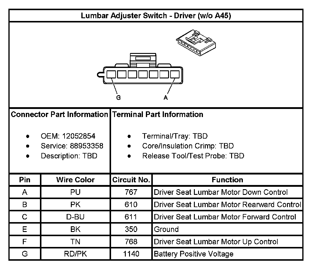 Lumbar Adjuster Switch - Driver (Without RPO Code A45):
