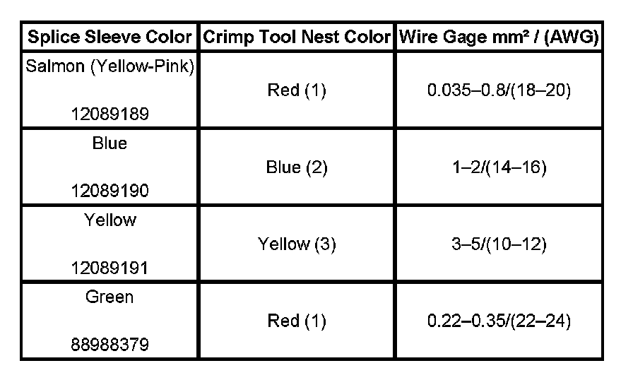 4. Select the proper DuraSeal splice sleeve according to the wire size. Refer to the above table at the beginning of the repair procedure for the color coding of the DuraSeal splice sleeves and the crimp tool nests.