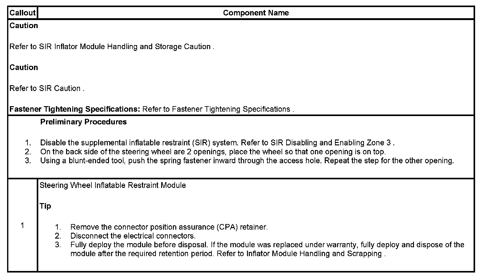 INFLATABLE RESTRAINT STEERING WHEEL MODULE REPLACEMENT