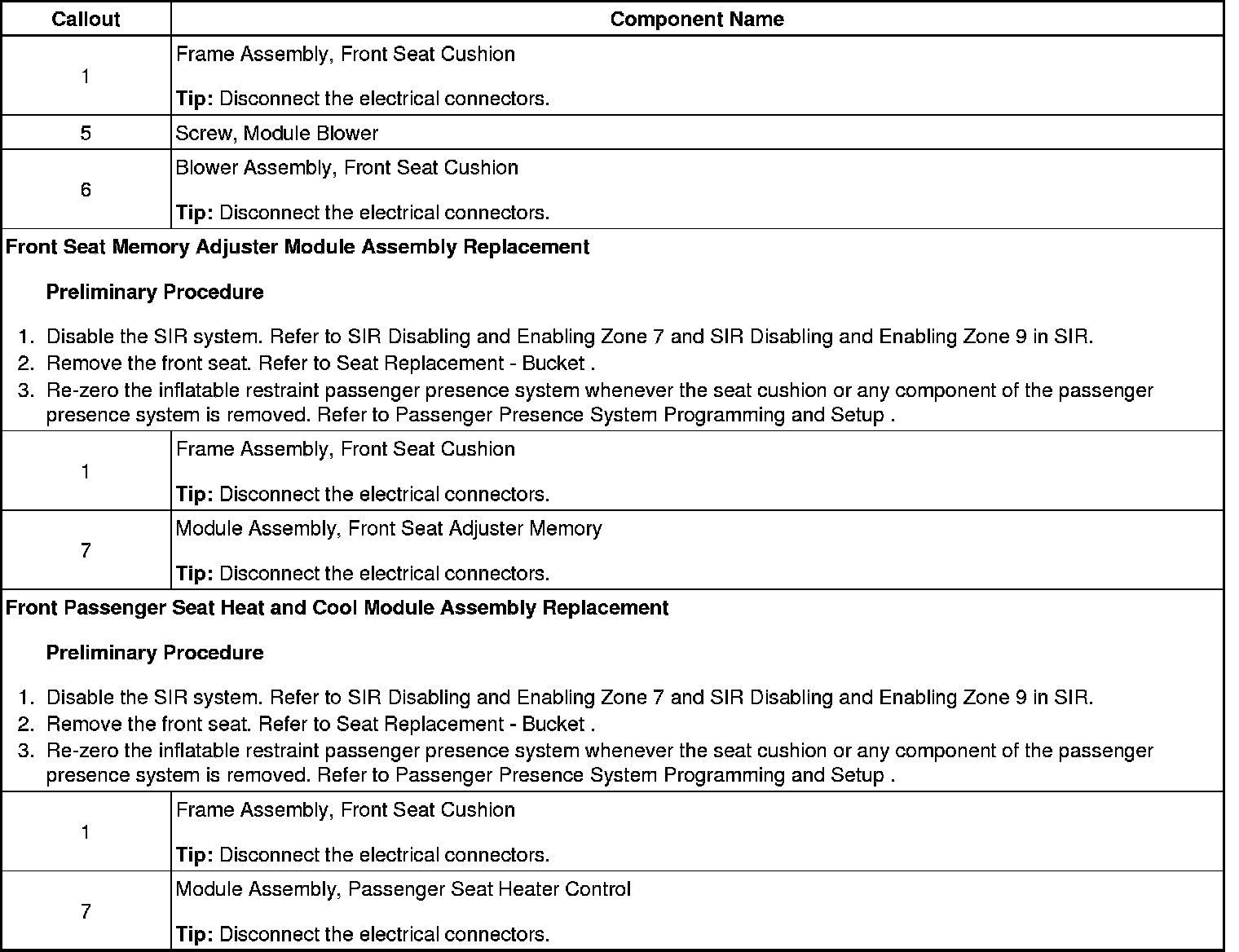 Frame, Trim Cover, Heater, Pad, Blower, Power Adjuster Control Module Replacement - Front Seat Cushion