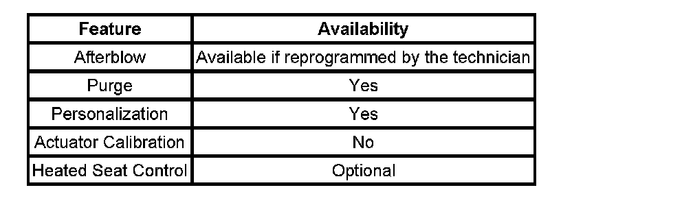 If the remote start personalization feature for climate control is selected through radio, the HVAC control module will receive information that defines the current driver of the vehicle from the Ezkey module through GMLAN communication. This information shall be stored inside the HVAC control module memory. When a different key fob is selected, the HVAC control module will recall the appropriate driver settings. The full auto mode and previous set temp will be commanded if inside air temperature is above 0°C (32°F). Defrost mode will be commanded when the inside air temperature is below 0°C (32°F). Upon a battery reset, the HVAC control module shall also set the driver ID to Driver#1. The HVAC system will memorize the following system configurations for up to 2 unique drivers: