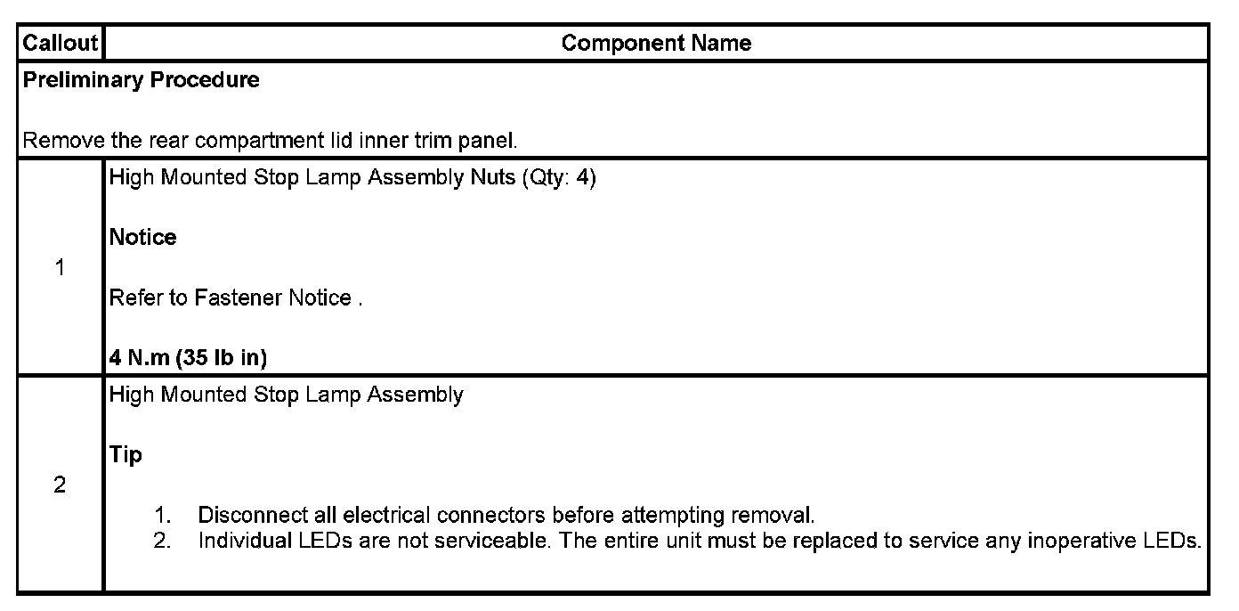 HIGH MOUNTED STOP LAMP REPLACEMENT