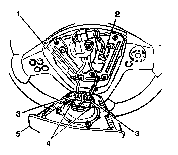 8. Remove the horn contact lead (2) from the steering column cam tower.