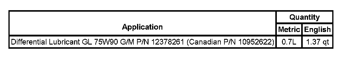 Lubrication Specifications: