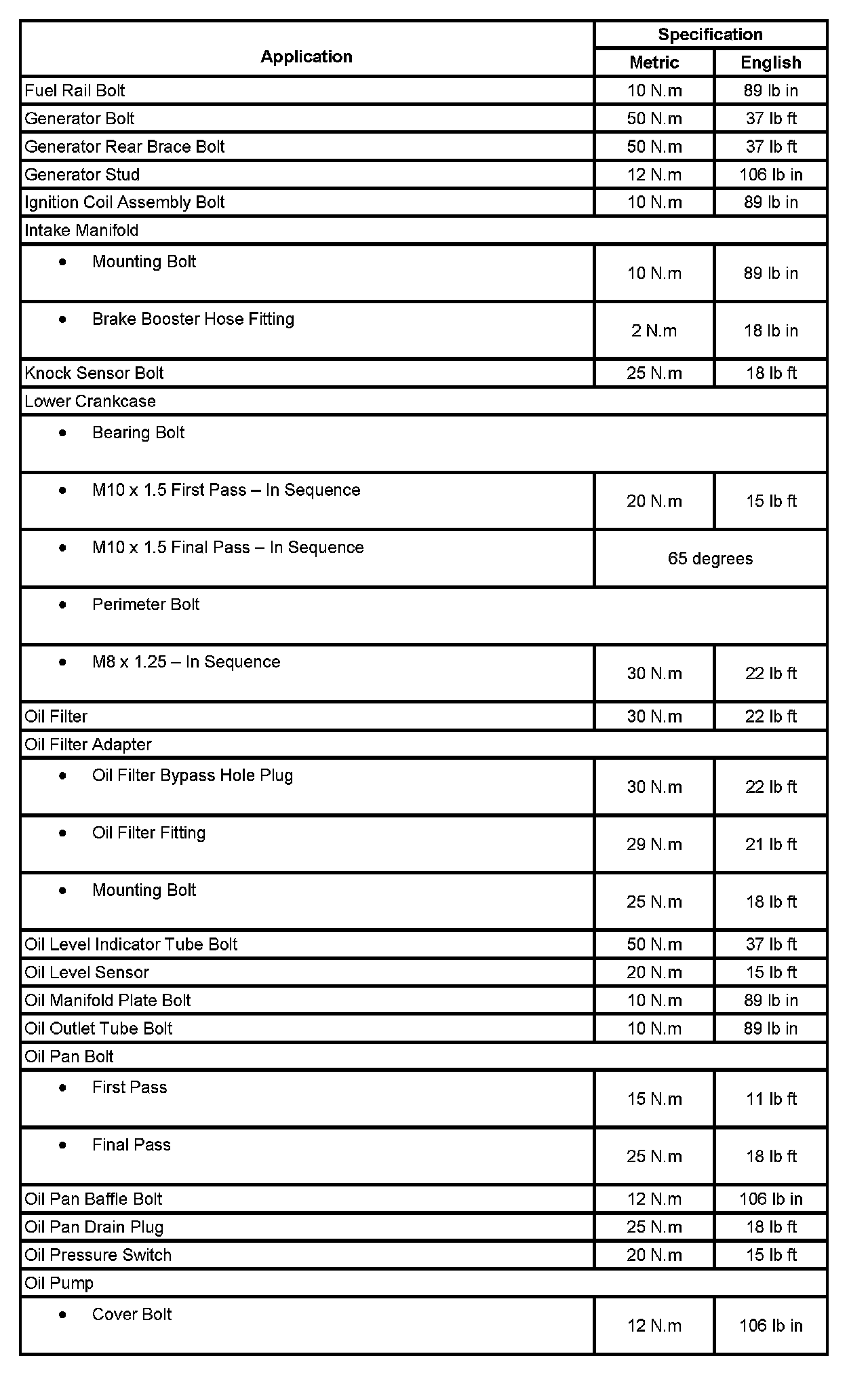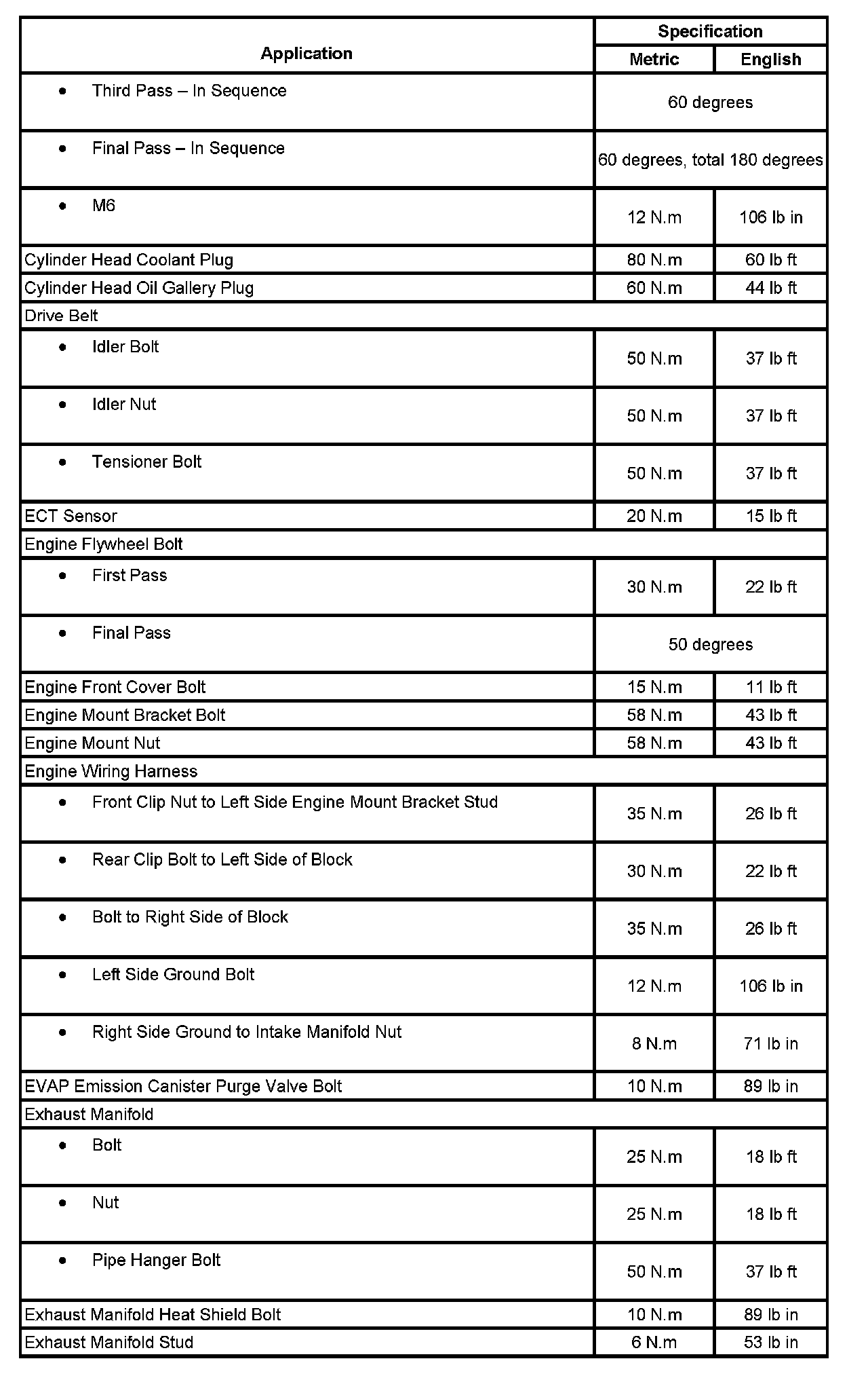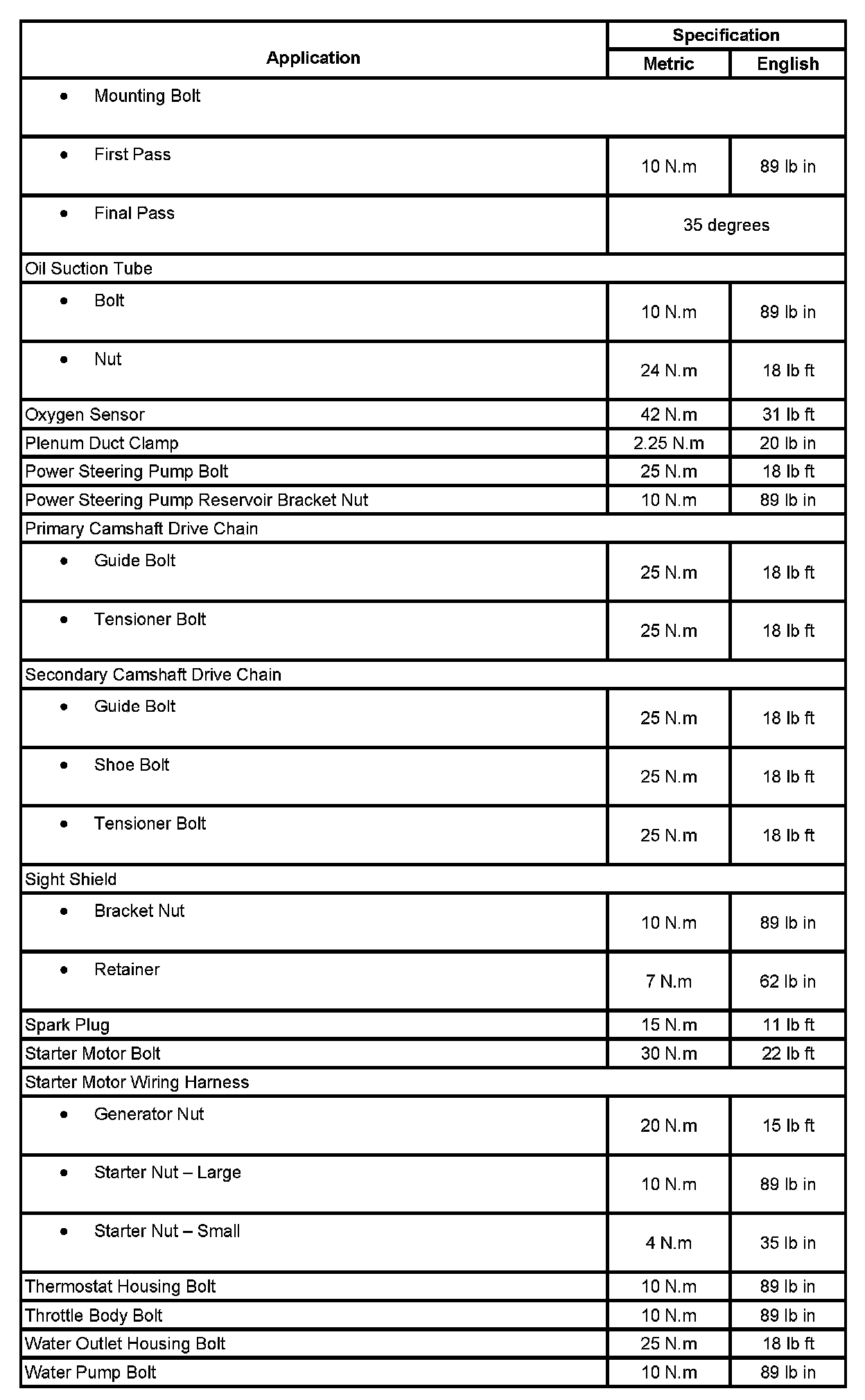 Fastener Tightening Specifications:
