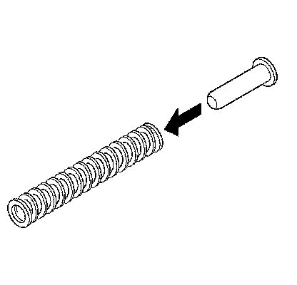 5. Caution: The tilt spring and the spring guide are under pressure. The tilt spring and the spring guide may become a projectile. Secure the spring with locking pliers during removal. Secure the spring with locking pliers during installation. Bodily injury may result during removal and installation of the tilt spring and the spring guide. Always use caution during removal and installation of the tilt spring and the spring guide.