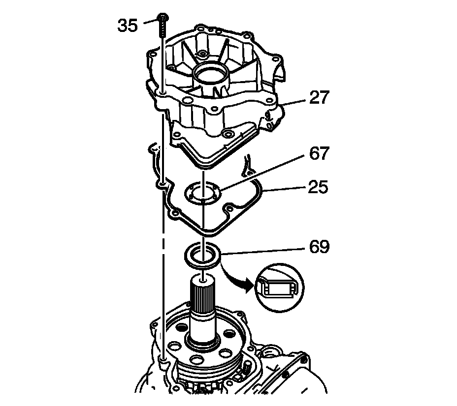 6. Install the extension housing gasket (25) onto the extension housing (27).