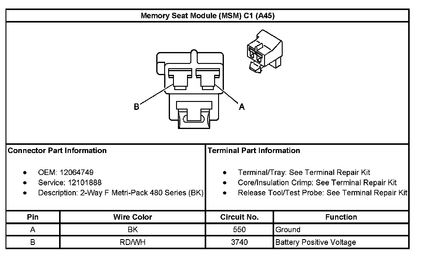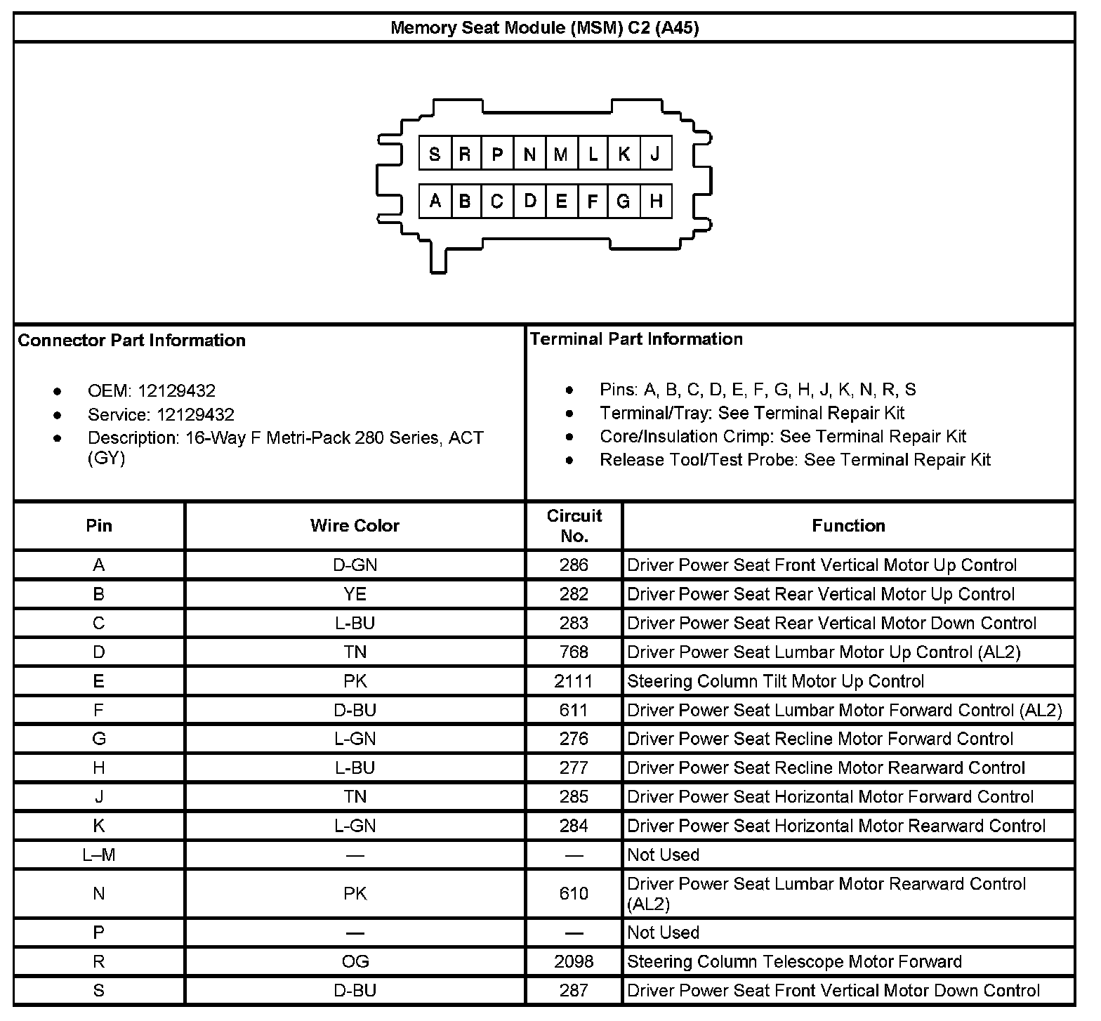 Memory Seat Module (MSM) C1 (With RPO Code A45):