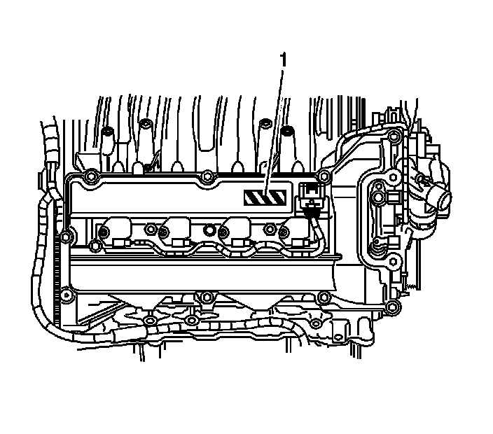 The front of the right camshaft cover has a traceability label (1).