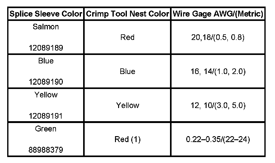 5. Select the proper duraseal splice sleeve (2) and the required crimp nest tool. Refer to the Crimp and Seal Splice Table.