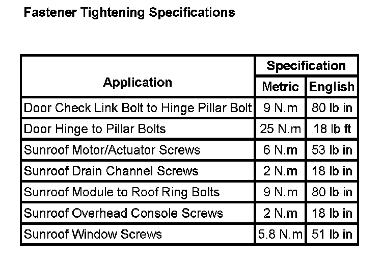 Sunroof / Moonroof: Specifications