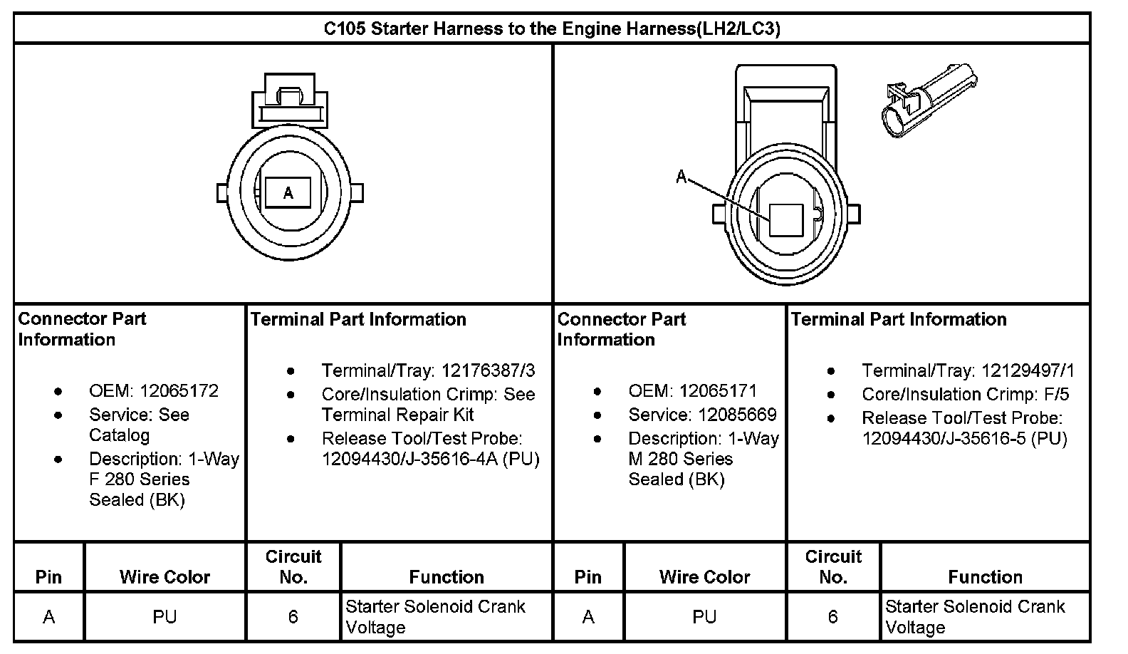 C105 Starter Harness To The Engine Harness:
