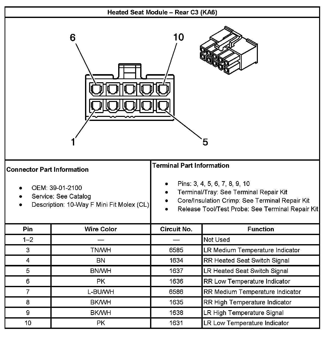 Heated Seat Module - Rear C3 (With RPO Code KA6):