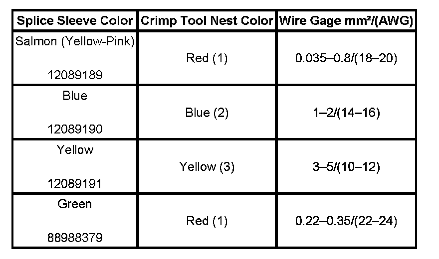 6. Select the proper DuraSeal splice sleeve according to the wire size. Refer to the table at the beginning of the repair procedure for the color coding of the DuraSeal splice sleeves and the crimp tool nests.