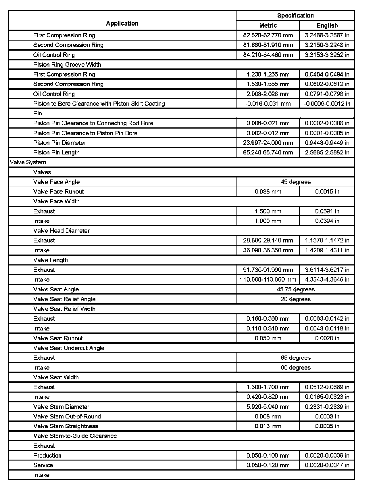 Engine Mechanical Specifications (Part 2):